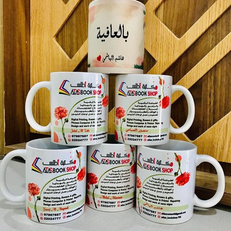 طباعة أكواب سيراميك بتصاميم احترافية وألوان دقيقة، مثالية للهدايا الترويجية والمناسبات الخاصة.